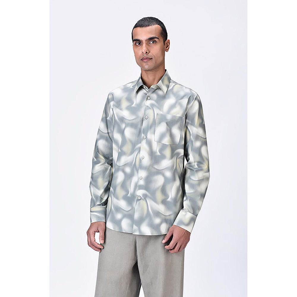 Genes Lecointe Hemant Giza Cotton Poplin Aurora Print Shirt Taupe Clay