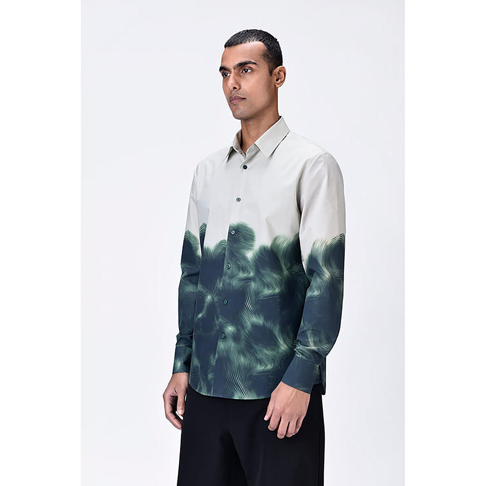 Genes Lecointe Hemant Giza Cotton Shirt With Uv Abstract Print- Taupe