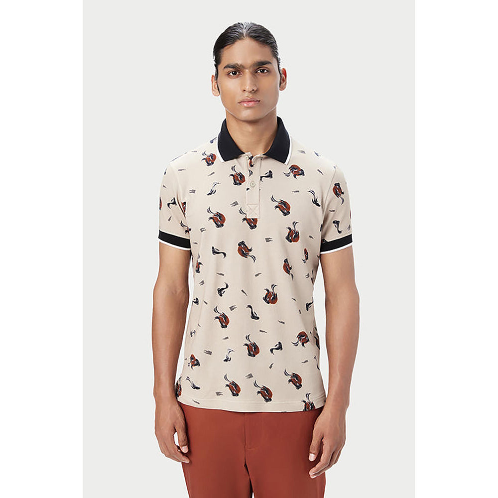 Genes Lecointe Hemant Regular Fit Polo T-Shirt With All-Over Fish Print