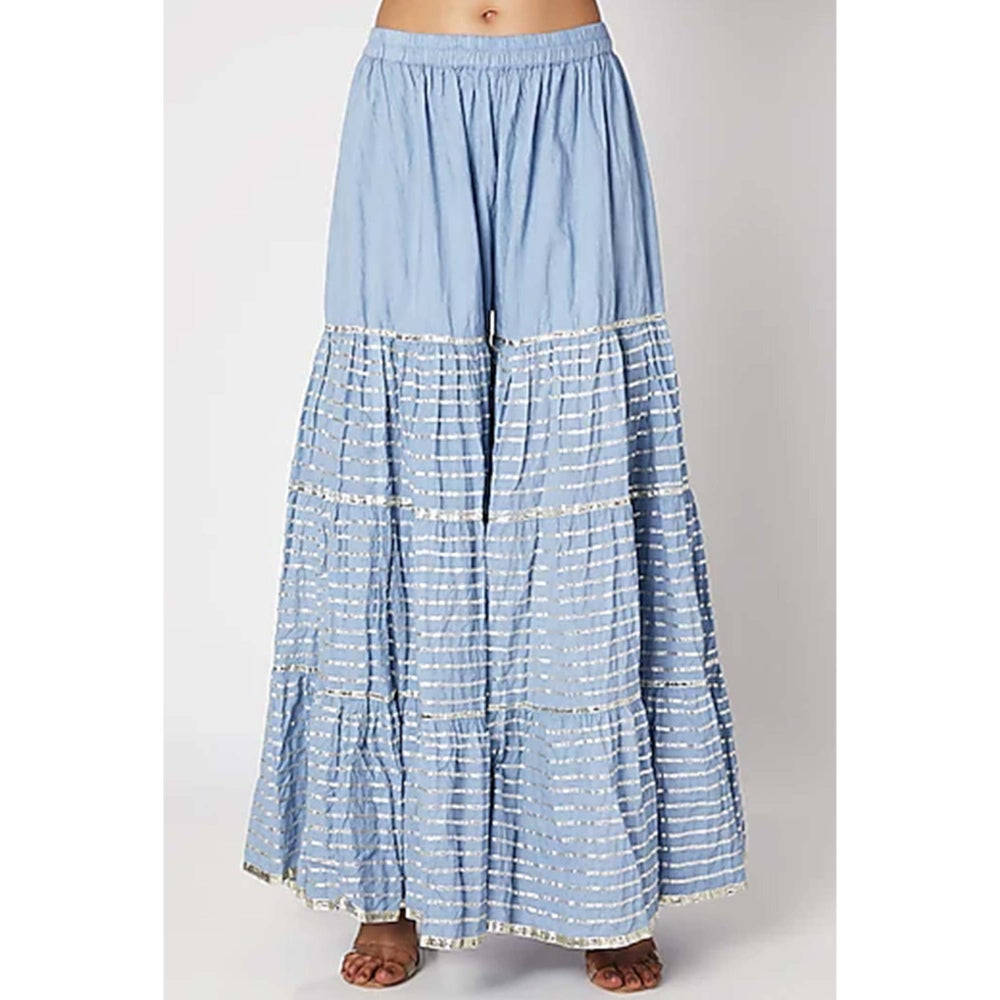 Gopi vaid Blue Gota Work Kurta With Sharara & Dupatta (Set of 3)