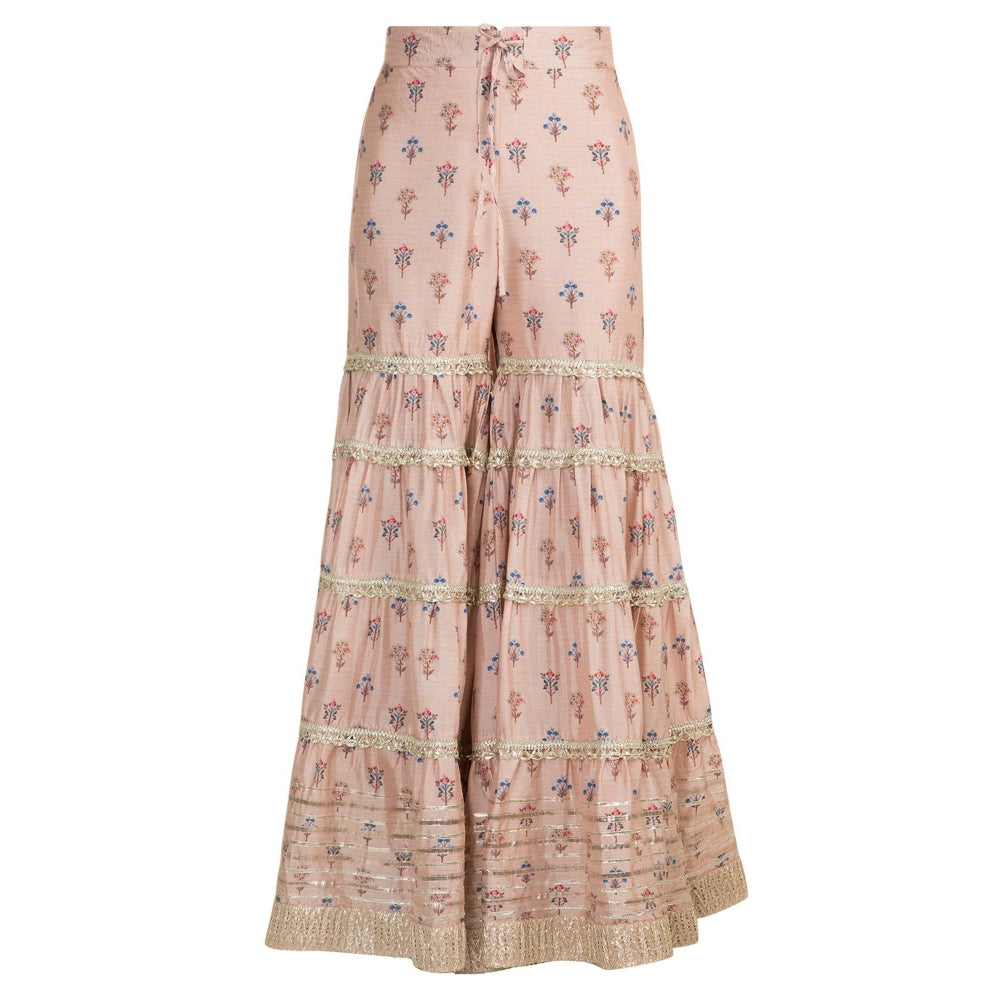 Description : A beautiful pink kurta crafted by Gopi Vaid, in chanderi with gota embroidery. This beautiful kurta is paired with matching sharara pants and a net dupatta and oozes elegance and comfort and can be gracefully carried to work or an evening out of the house. Add some delicate jewellery and an embellished clutch to add the right amount of najhakat to this outfit!