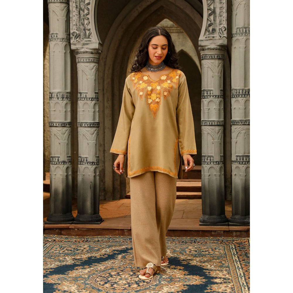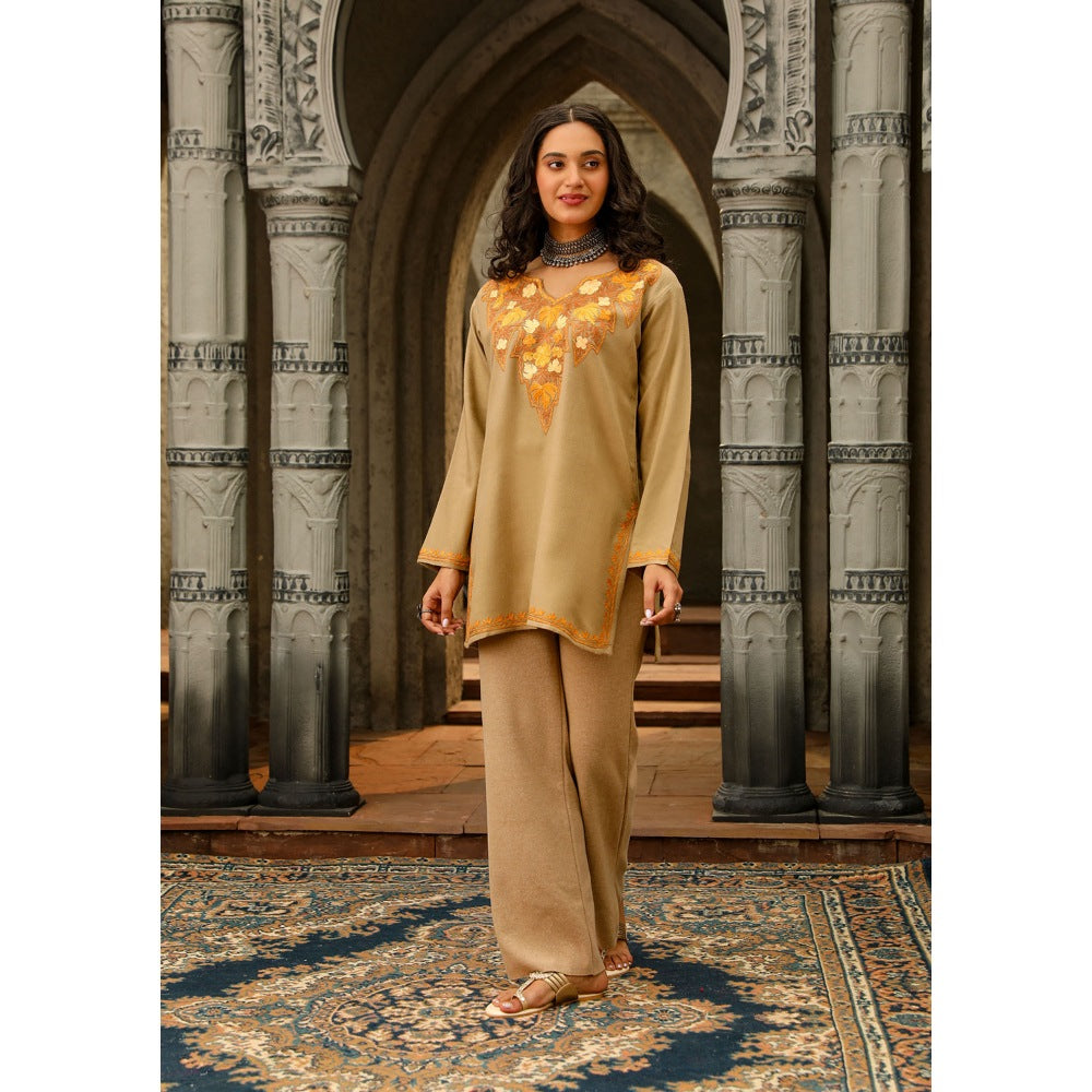 House of Chikankari Kasmira Aari Woollen Short Kurta