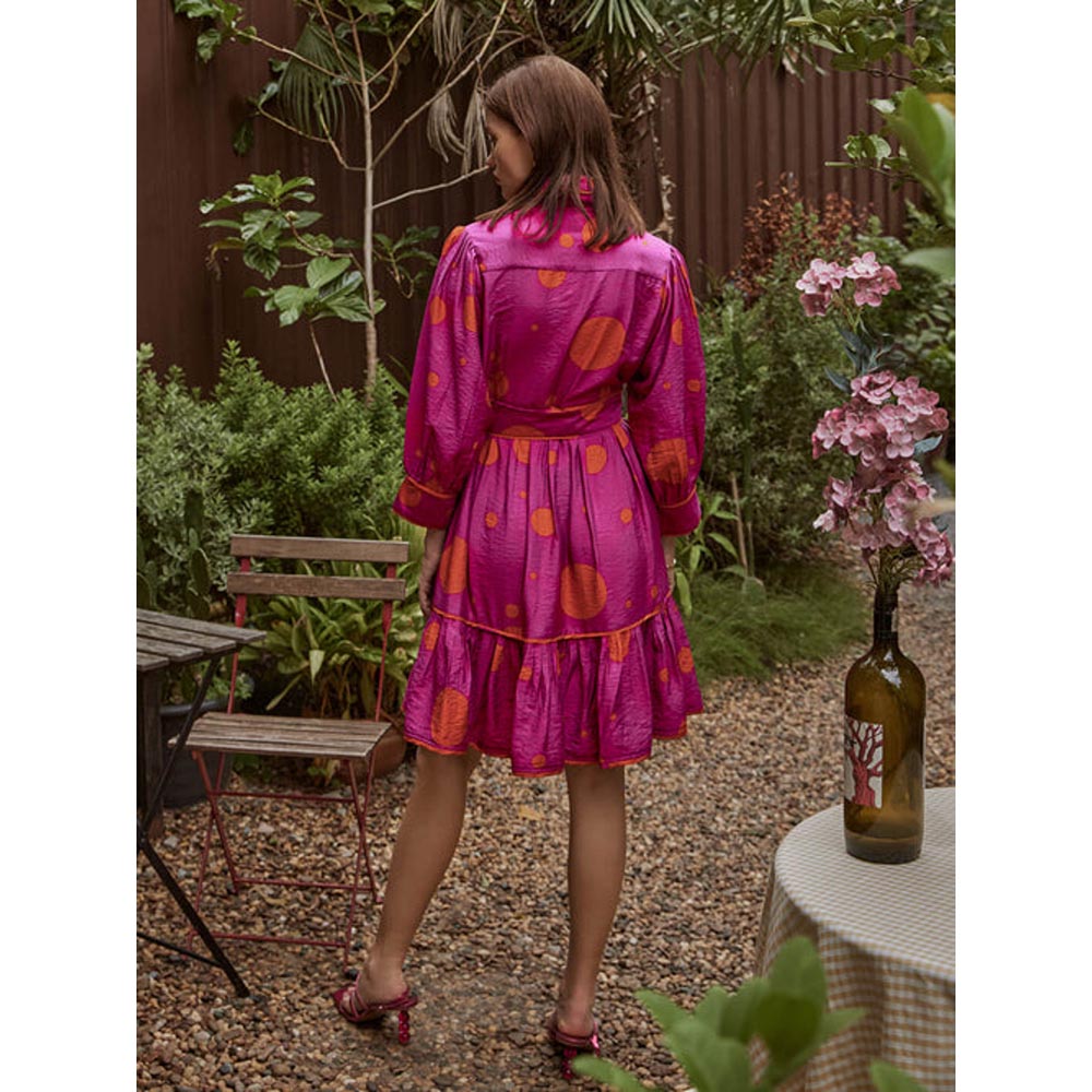 Description : The Wonka Polka Dot Dress Features A Bold Orange And Purple Print, Tiered Design, Pointed Collar, And A Matching Belt For A Flattering Silhouette. Perfect For Resort wear, Holiday Wear, Brunch, And Vacations.