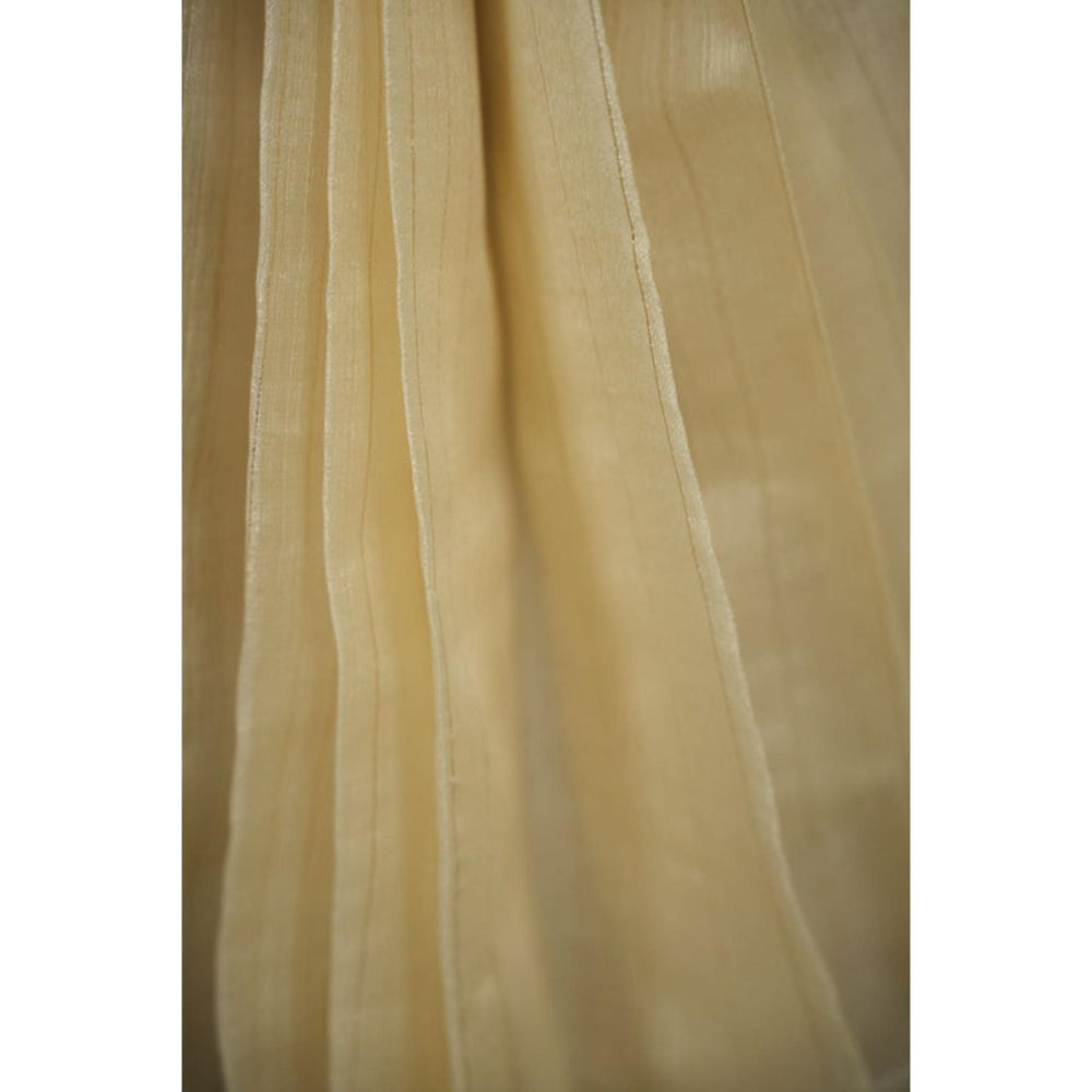 Womens Stripes Zari Ivory Pre-Draped Saree With Unstitched Blouse