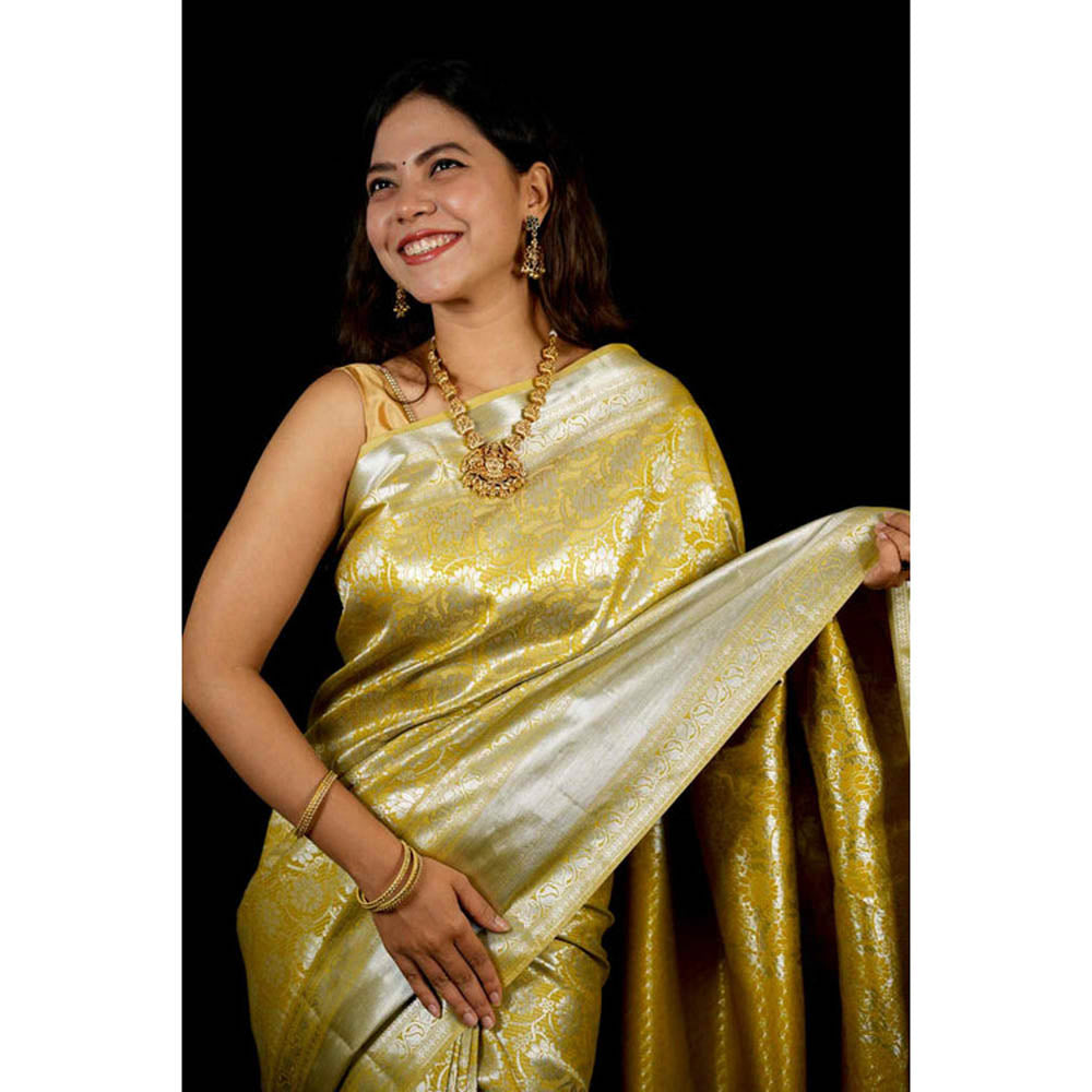 Description : Embrace timeless tradition with our exquisite yellow saree paired with an unstitched blouse piece, giving you the freedom to customize your perfect fit and style. Crafted from luxurious fabric of silk that flows effortlessly, this saree showcases intricate detailing and vibrant hues designed to turn heads at any celebration or festive occasion. The unstitched blouse lets you tailor the look exactly how you envision be it classic, contemporary, or somewhere in between. Whether draped for weddings, parties, or cultural events, this set promises grace, comfort, and endless styling possibilities.