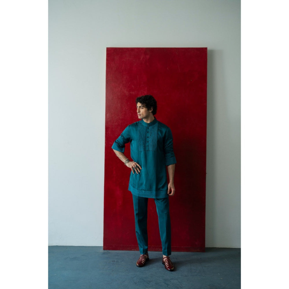 Jatin Malik Jade Tamarisk Short Jacket with Kurta and Trouser (Set of 3)