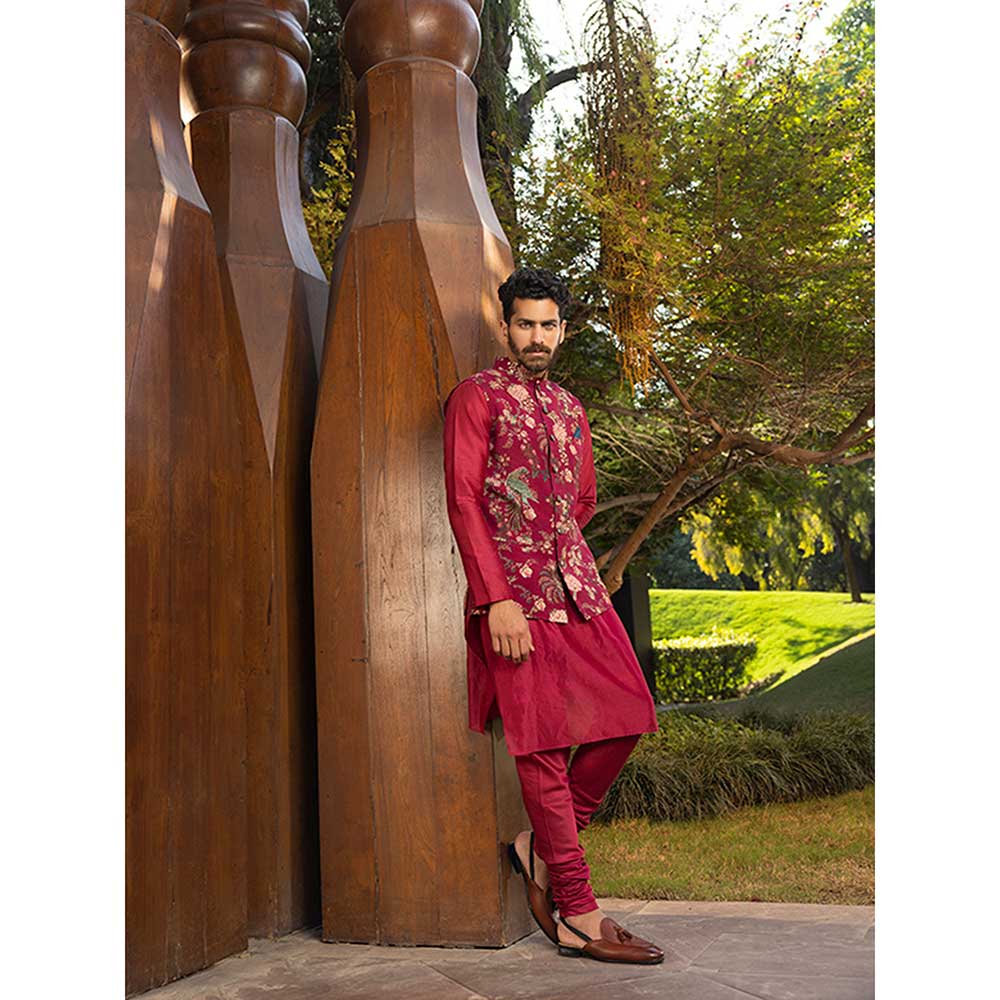 Description : For an Intimate Nighttime event, Go for our singnature bandi set . Highlighted in floral print and textured badla work, comes with kurta is meant to be worn with a matching churidar.