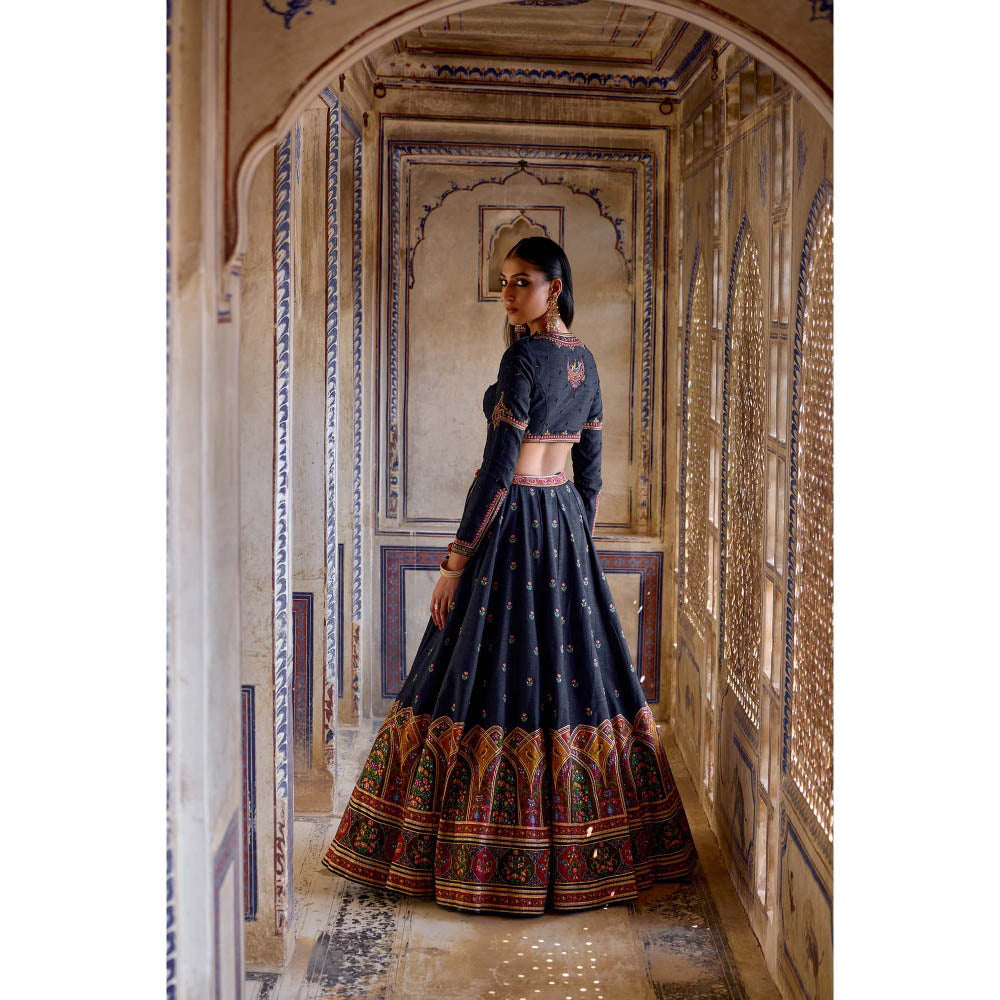 KALISTA Navy Blue Zenat Lehenga with Blouse and Dupatta (Set of 3)