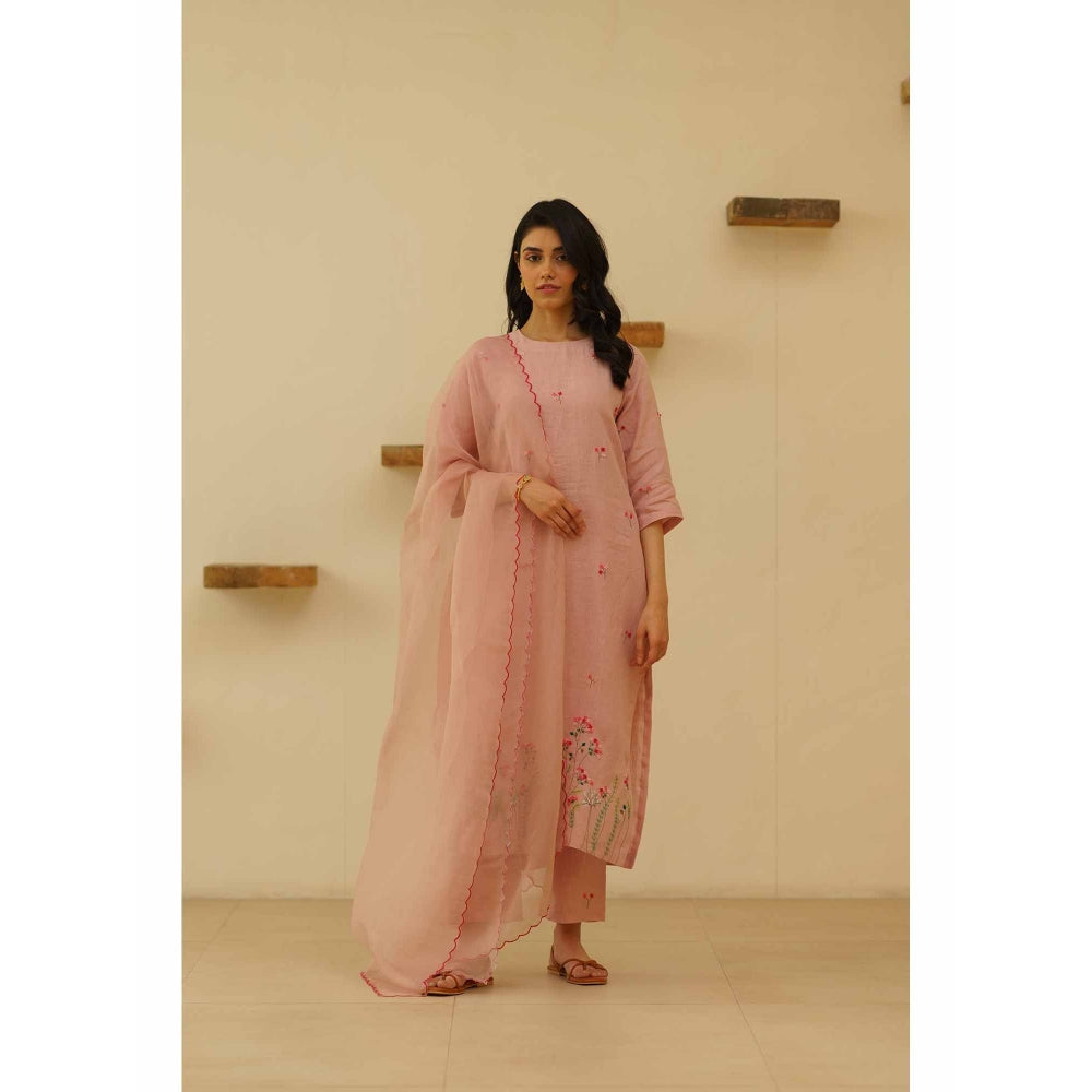 Description : Introducing Our Exquisite Dusky Pink Embroidered Kurta, Radiating Charm And Elegance. This Captivating Ensemble Boasts Intricate Embroidery, Adding A Touch Of Sophistication To Your Look. Elevate Your Style Effortlessly With This Versatile Piece, Perfect For Making A Chic Statement On Any Occasion. Paired With Straight Pants, Adorned With Intricate Floral Motifs Along The Edges, This Flowy Ensemble Makes It Perfect For Festive Wear- Crafted In Luxurious Linen.- Kurta Length Is 48 Inches. Pants Length Is 37 Inches. Dupatta To Be Bought Separately