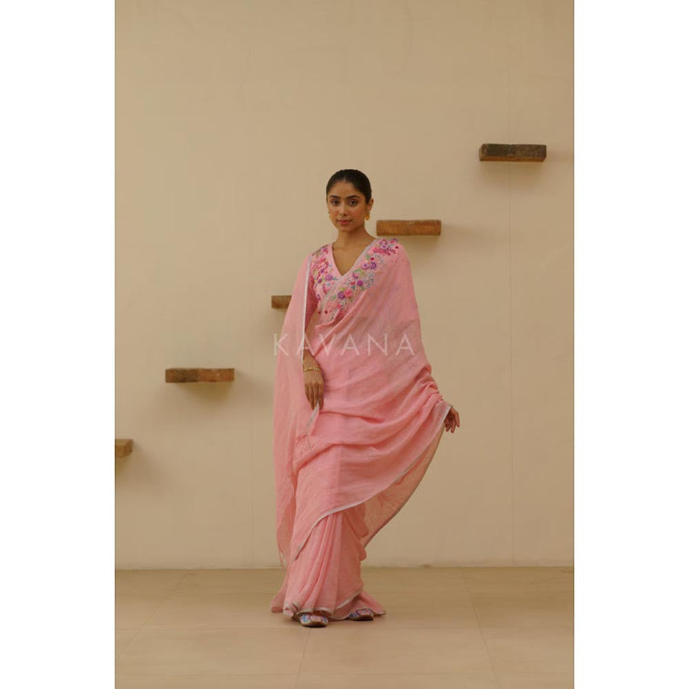 KAVANA Women Embroidered Pink Vanya Linen Saree