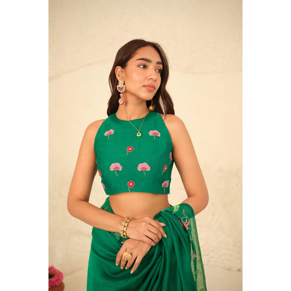 Women Floral Embroidered Green Numani Chanderi Stitched Blouse