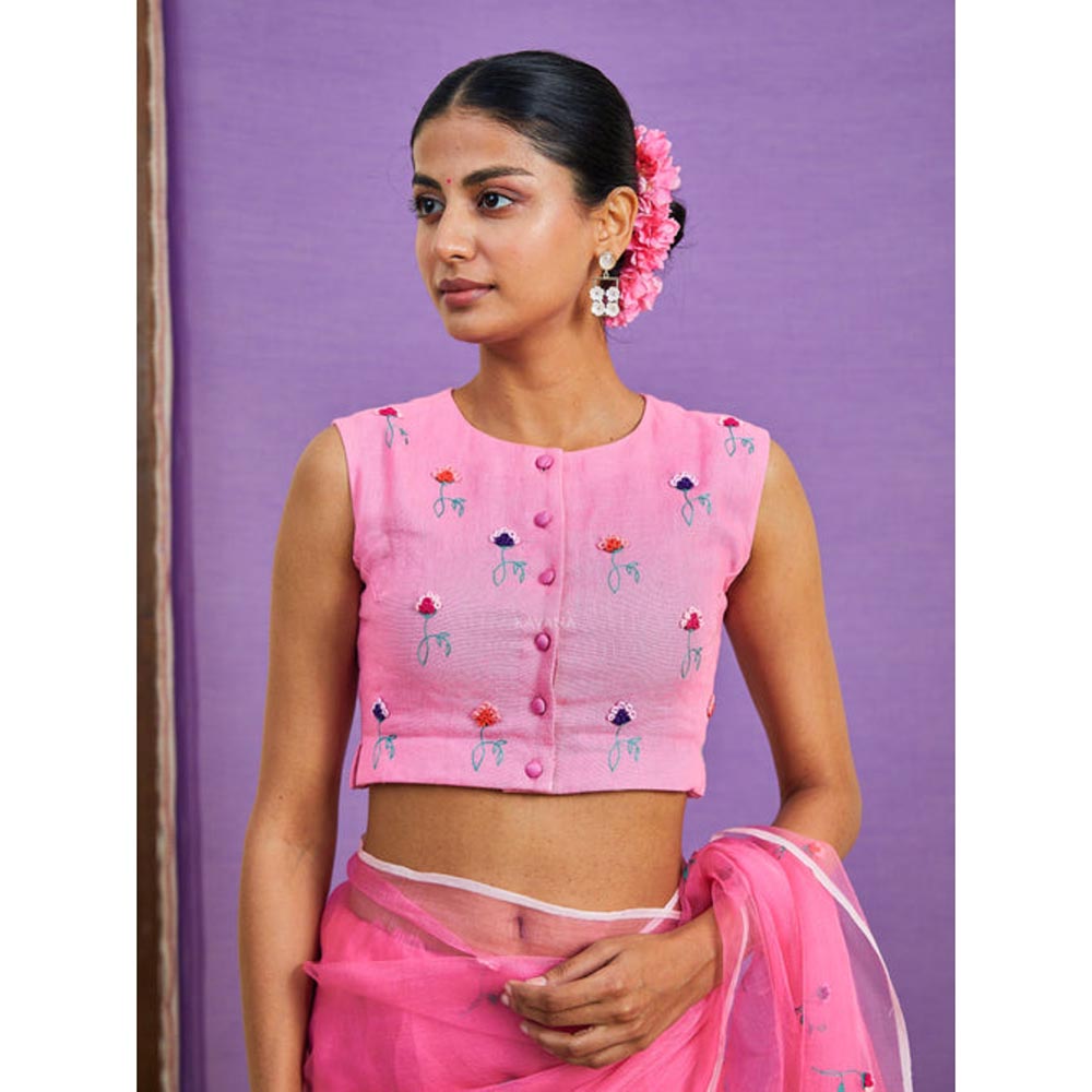 KAVANA Women Floral Embroidered Pink Dilkashi Stitched Blouse