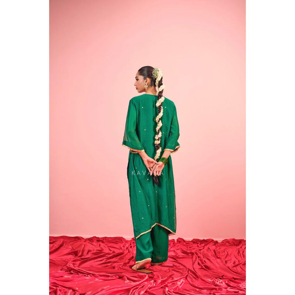 KAVANA Women Panna Green Chanderi Kurta with Pant