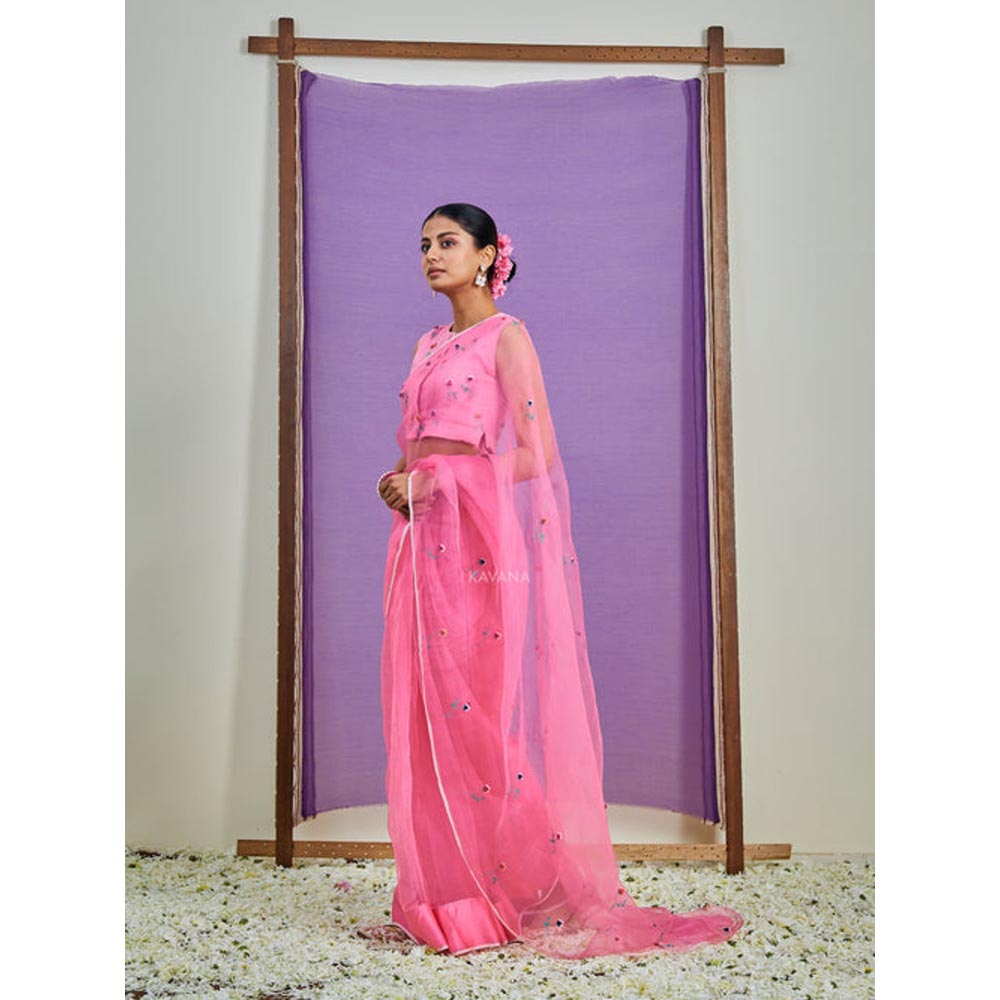 KAVANA Women Pink Embroidered Dilkashi Silk Organza Saree