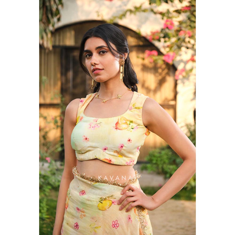 KAVANA Women Yellow Floral Print Lemonsoda Stitched Blouse