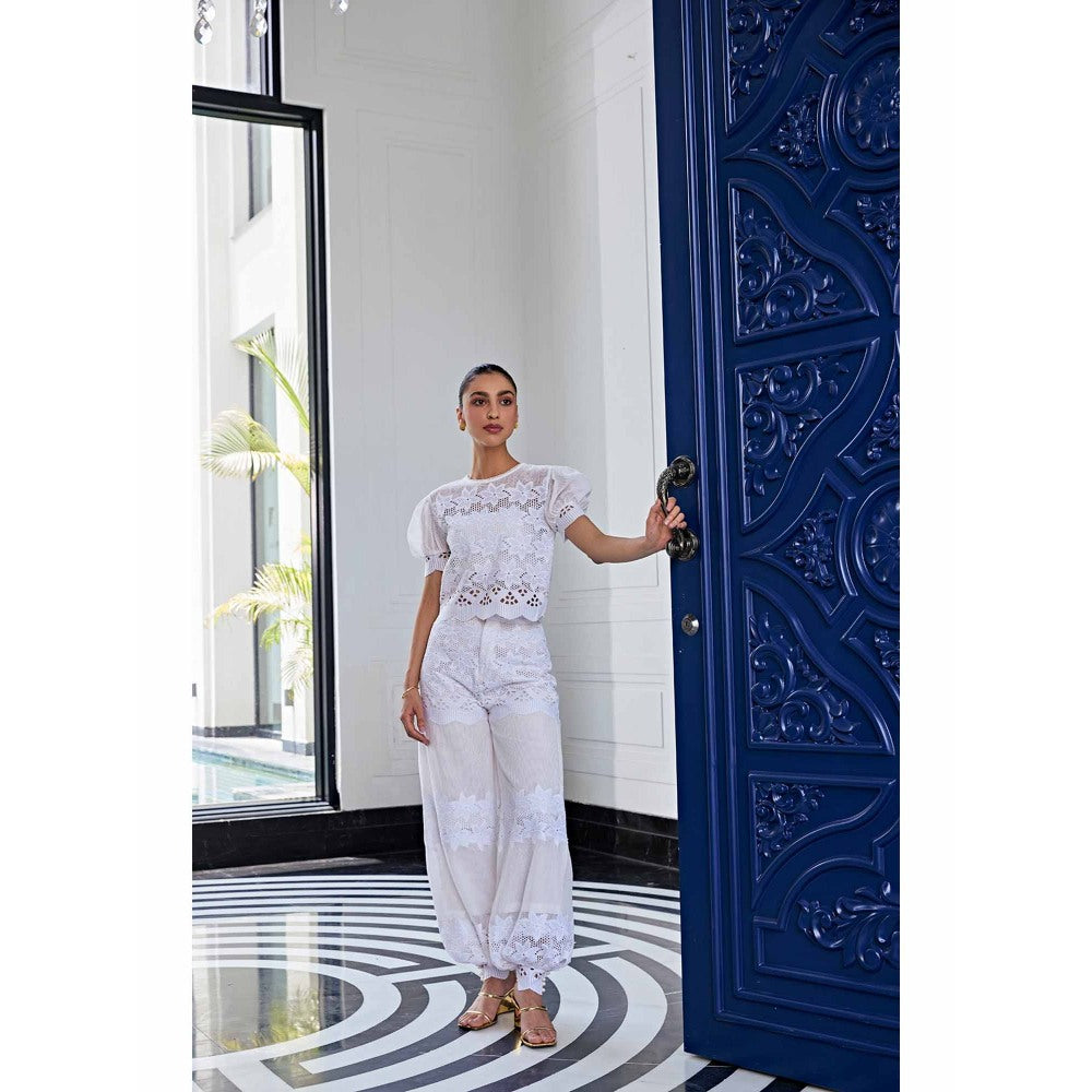 Women's White Lace Mesh Self Design Co-Ord (Set of 2)