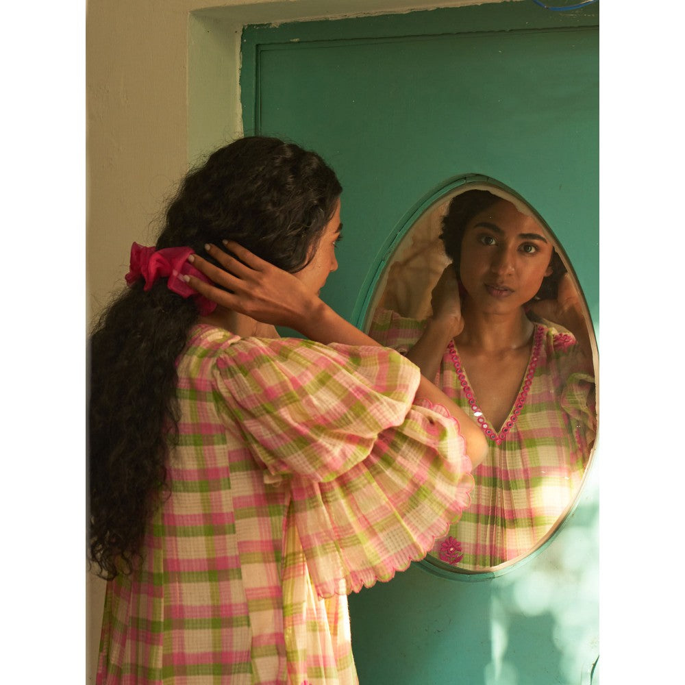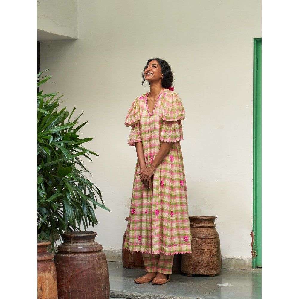 Description : Mangal giri hand woven missing check cotton kurta and pants with resham buti mirror work detailing. Dupatta has resham buti with scallop detailing. Tailored to sartorial perfection from premium quality fabric, it assures a soft and soothing touch against the skin. The exquisite silhouette adds to its appeal.