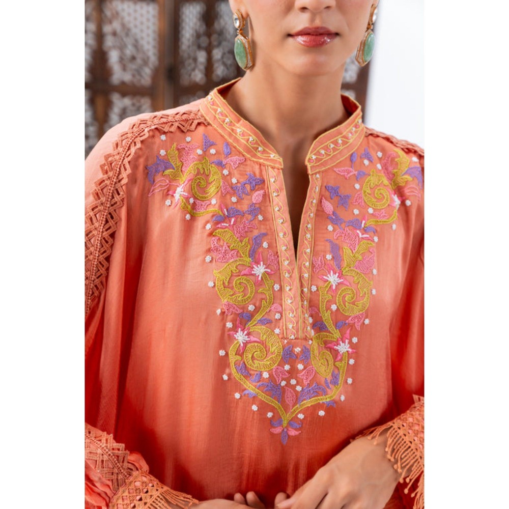 Leela by A Peach Chiffon Kaftan Kurta With Pant And Inner