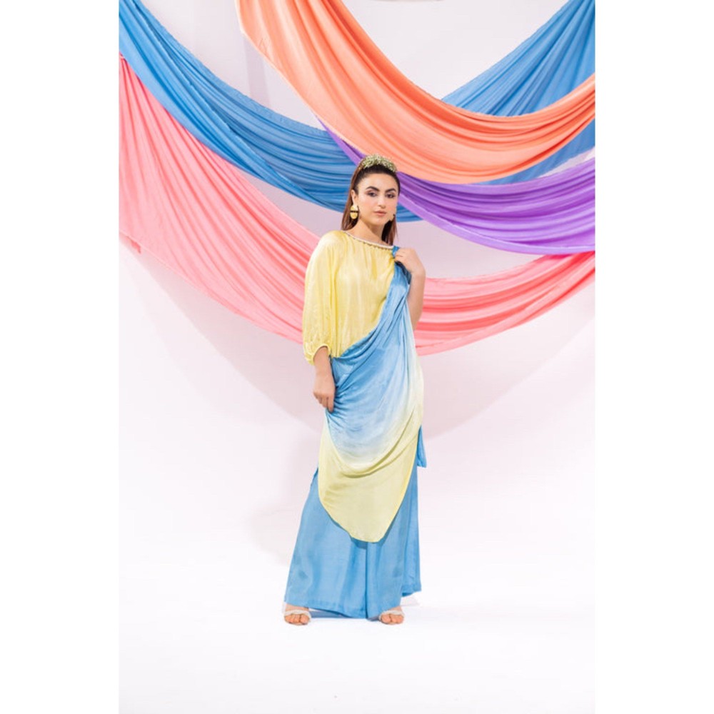 Leela by A Yellow Ombre Drape Kurta with Palazzo