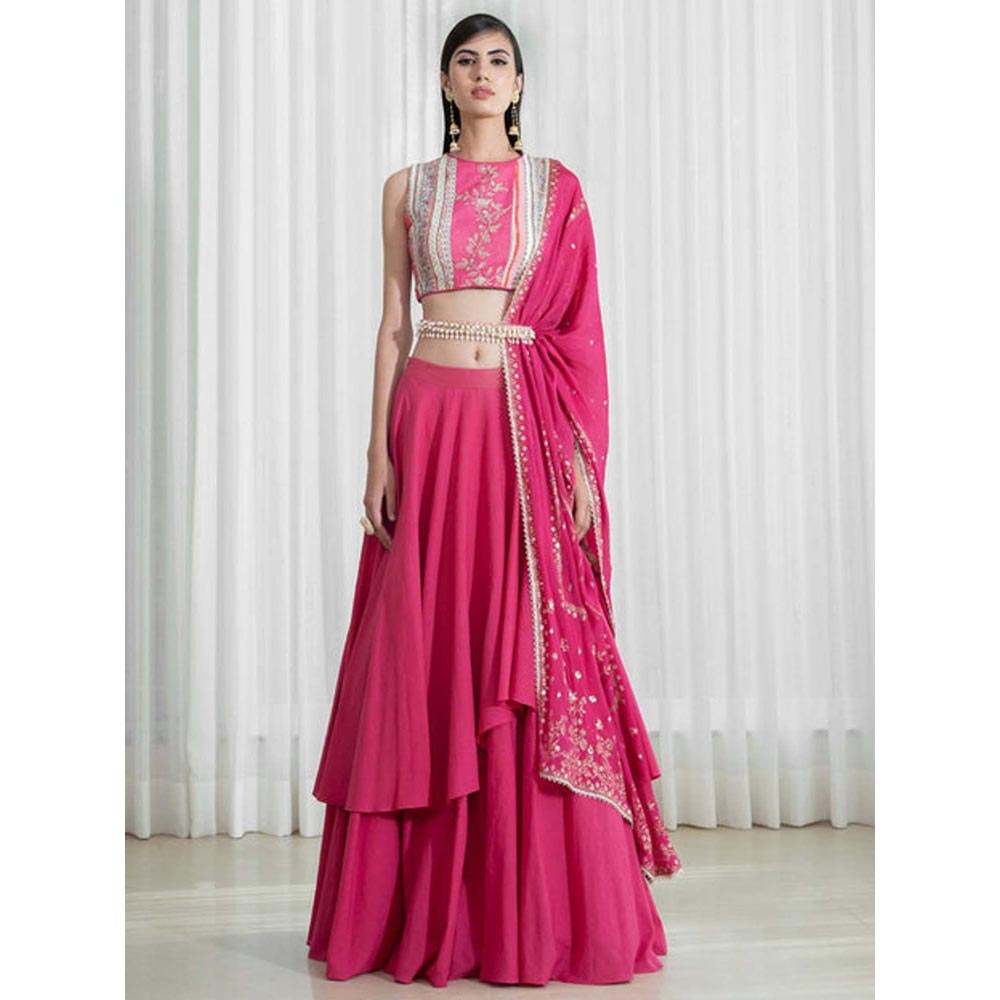 MANDIRA WIRK Double Layered Skirt With Blouse And Dupatta