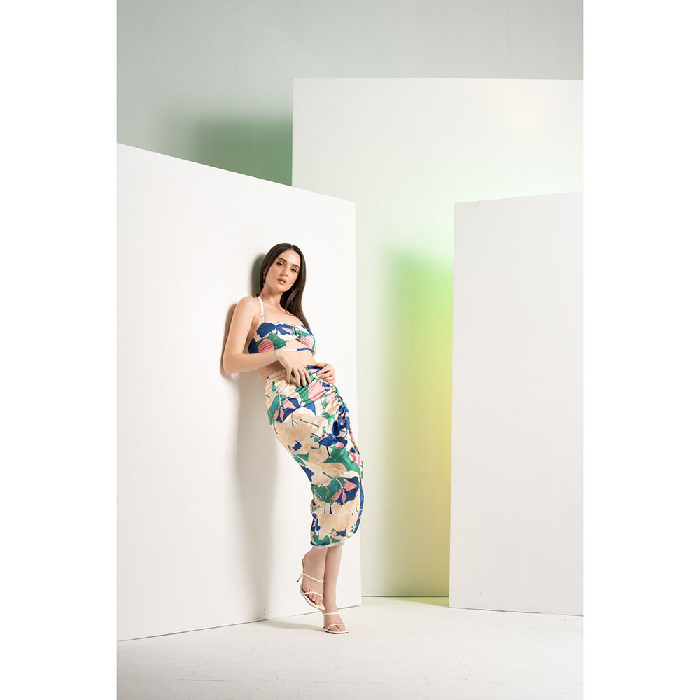 Multi-Colour Top With Shorts & Side Rushed Skirt (Set of 2)