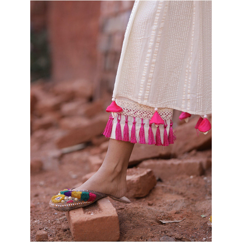Description : Get Ready To Steal The Spotlight with Our Full Sleeves A-Line Ivory Kurta Set.