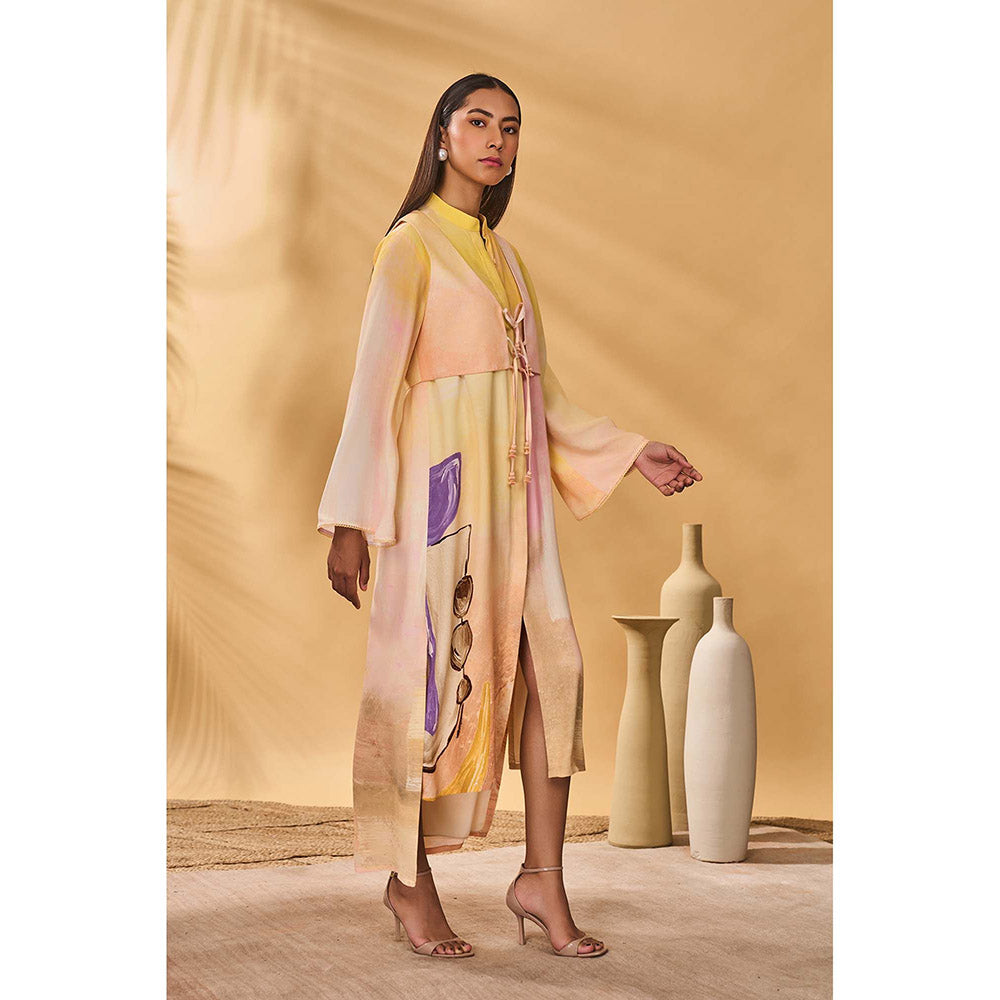 Multicolour Glazing Symphony Shirt Dress with Waist Coat (Set of 2)
