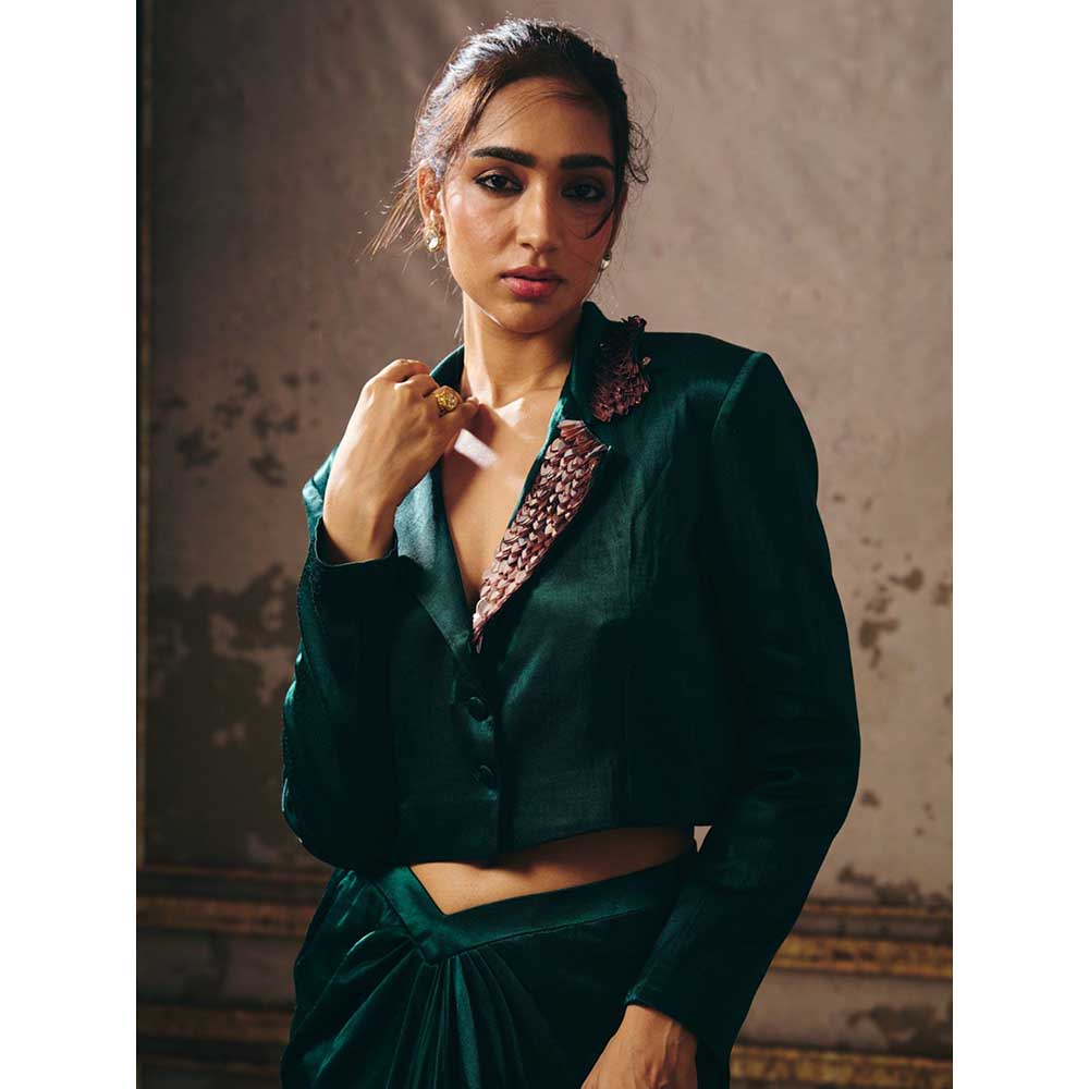 Masumi Mewawalla Dark Green Skirt with Jacket (Set of 2)
