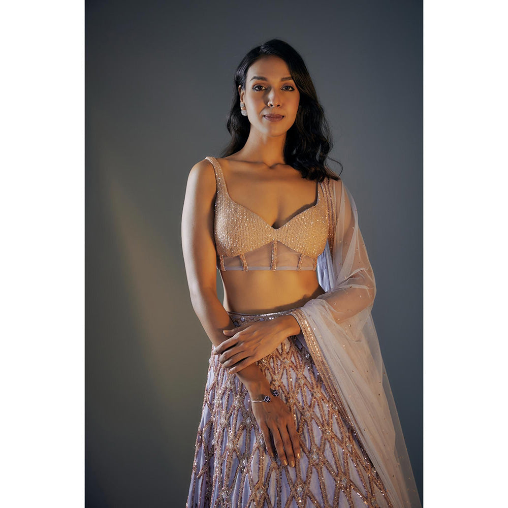 Masumi Mewawalla Ice Blue Embroidered Lehenga Set (Set of 3)