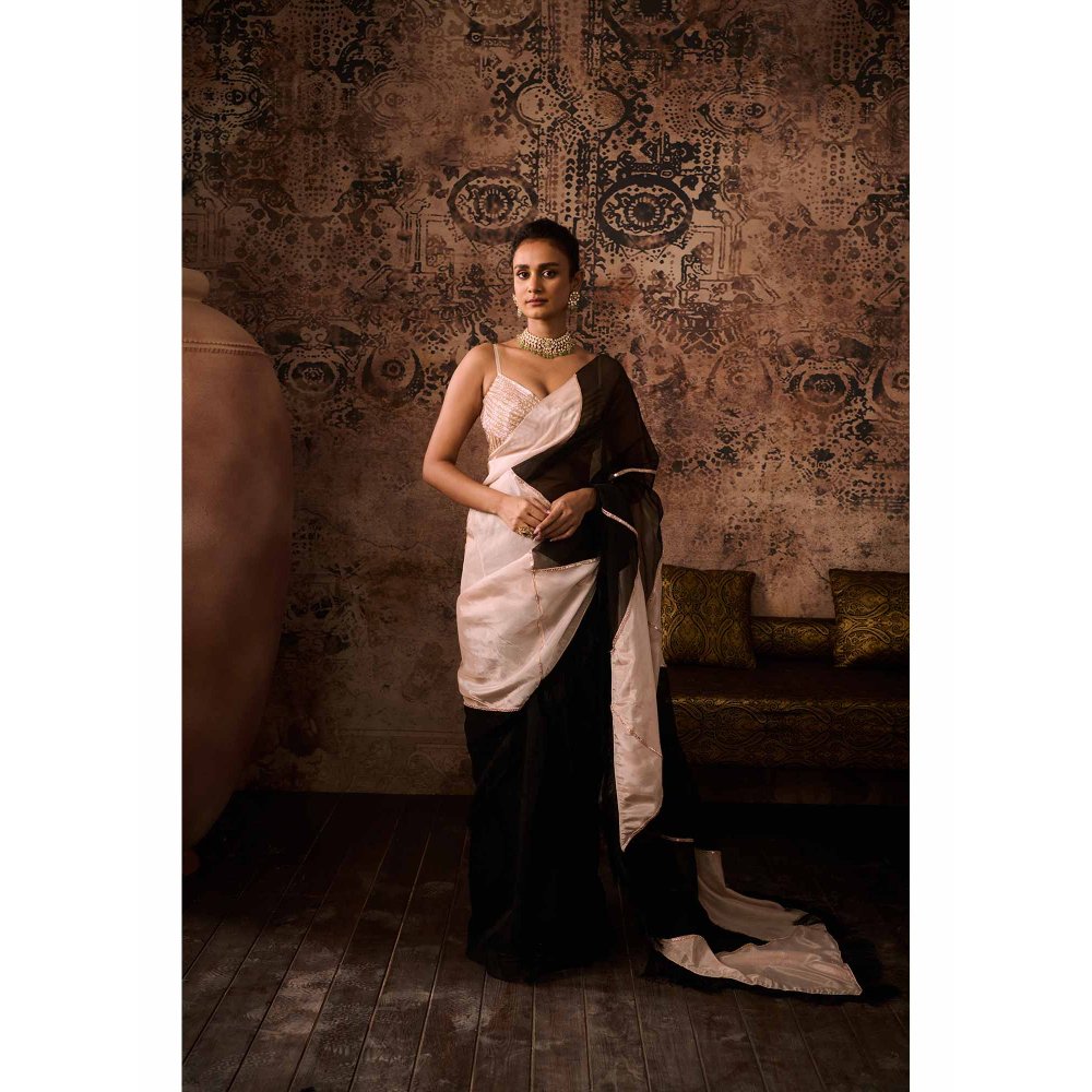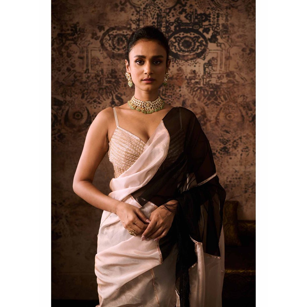 Description : Multicolor Embellished Pre Drape Saree with Stitched Blouse
