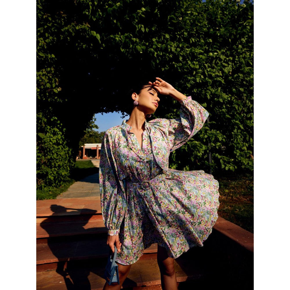 MEDHA BATRA Multi-Color Printed Full Sleeves Dress (Set of 2)