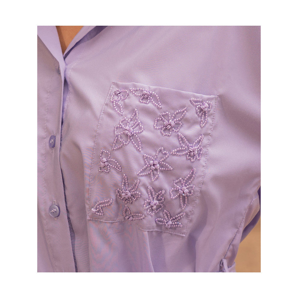 Description : Adorn the western vibes with this lavender Co-ord Set by MEHAK MURPANA. Made from high quality cotton, it features button fly closure and embellished pattern along with three fourth sleeves & collar neck. Pair it with heels and minimal jewellery complete your ensemble.