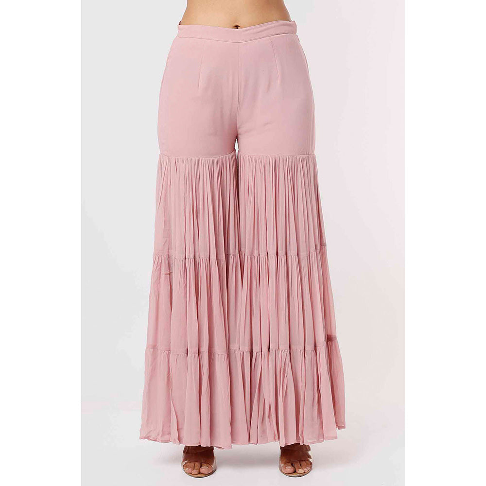 Rose Pink Short Kurta and Sharara with Hot Pink Dupatta (Set of 3)