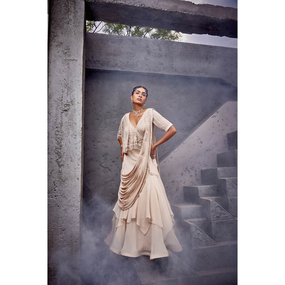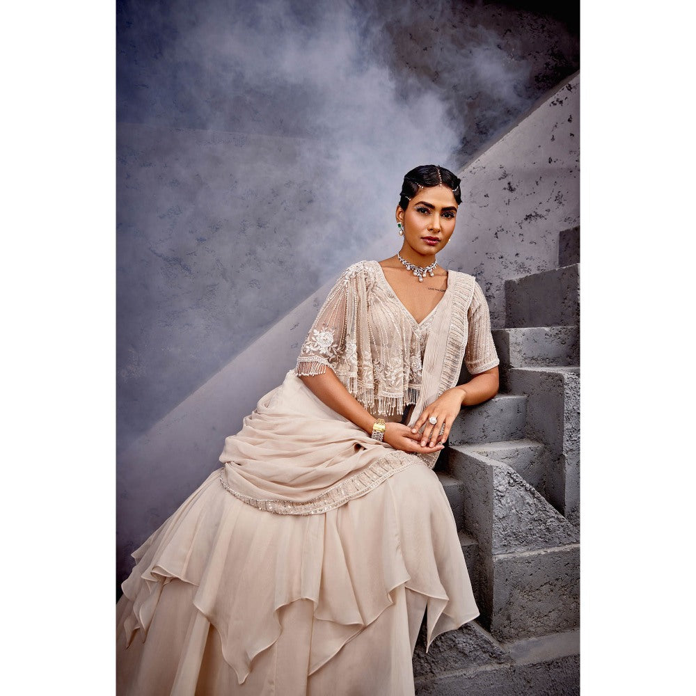 Miku Kumar Beige Ayat Blouse with Drape Lehenga (Set of 2)