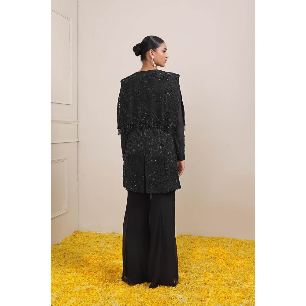 Miku Kumar Black Zaina Peplum Jacket with Sharara (Set of 2)