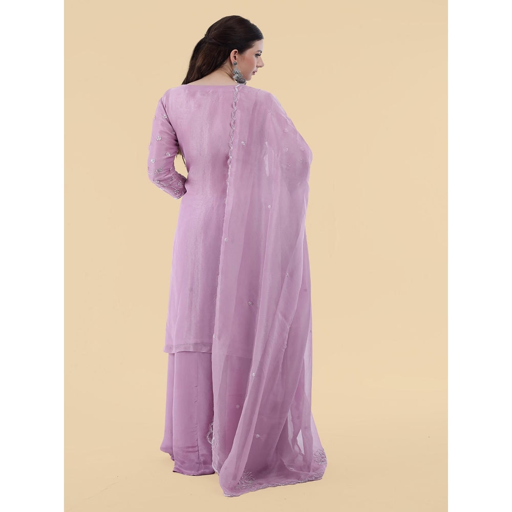 MILU MADAN Lavender Crepe Tissue Kurta with Palazzo and Dupatta