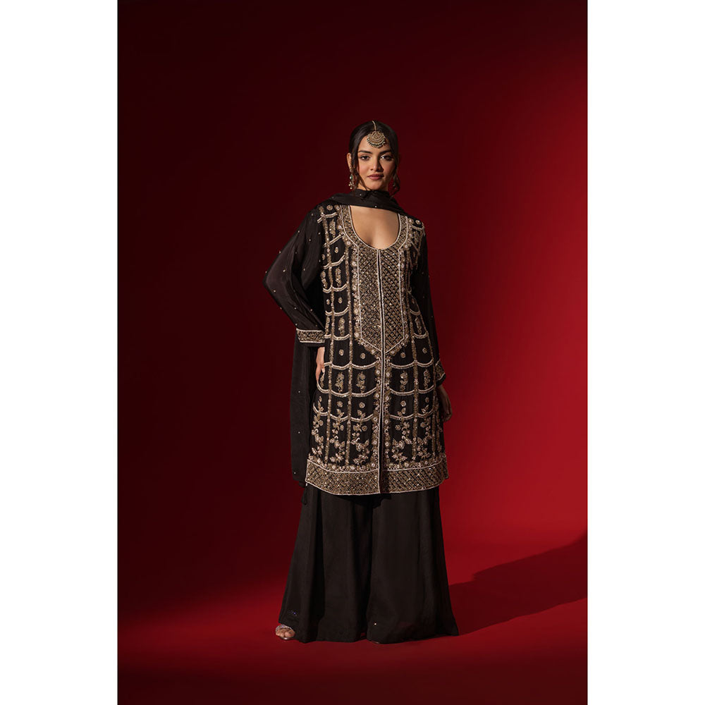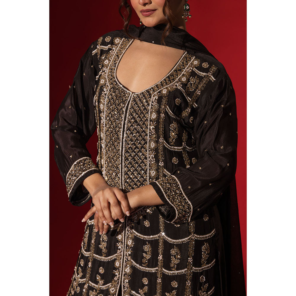 Mocha Black Embroidery Kurta with Palazzo & Dupatta