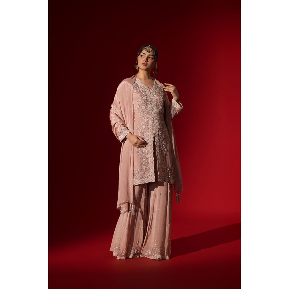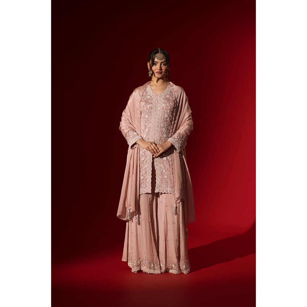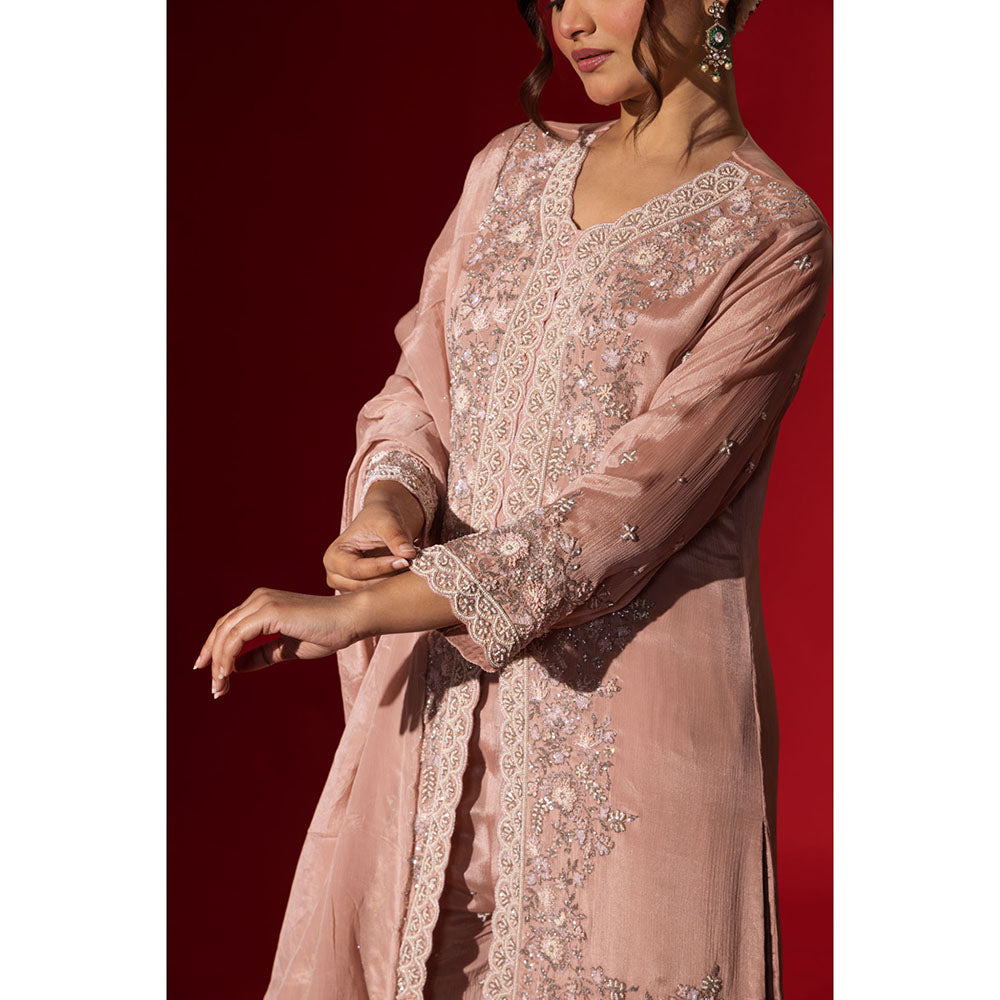 Naseebo Pastel Pink Embroidered Kurta with Palazzo & Dupatta