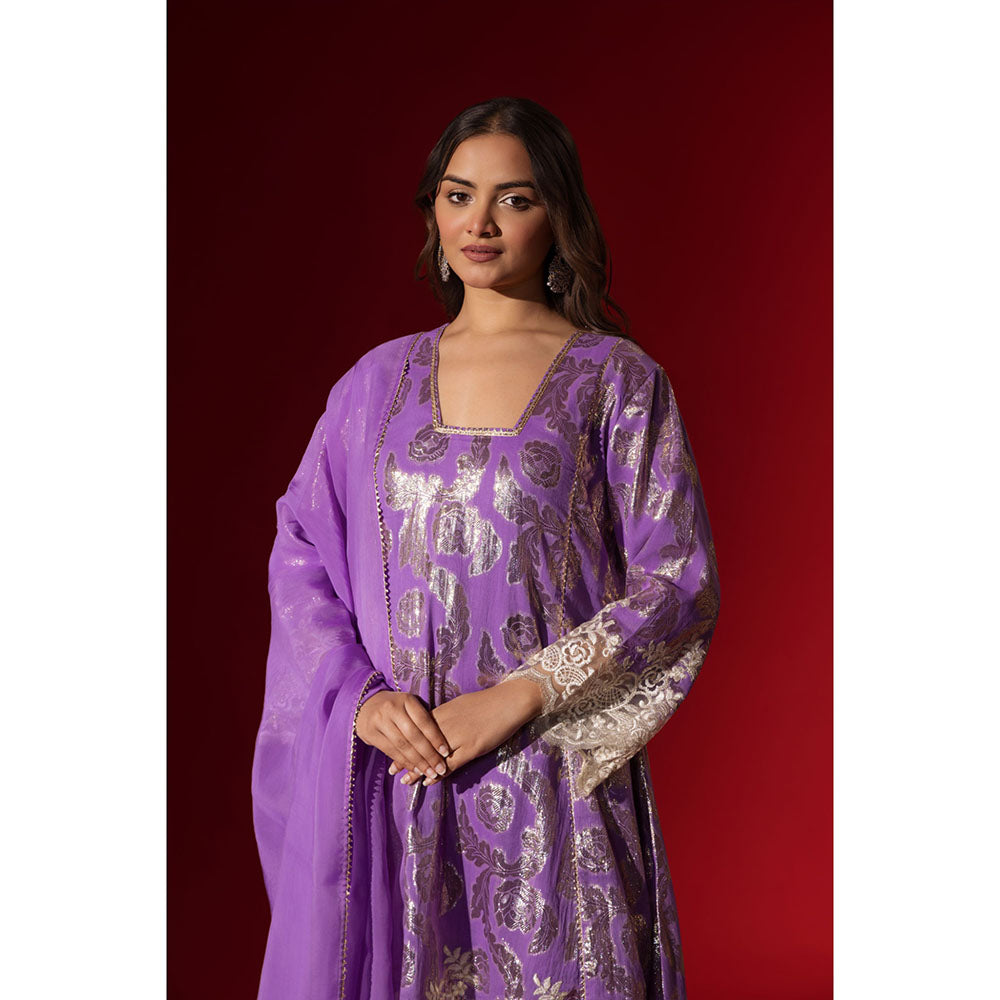 Naseebo Ruhaani Purple Shimmer Kurta with Pant & Dupatta