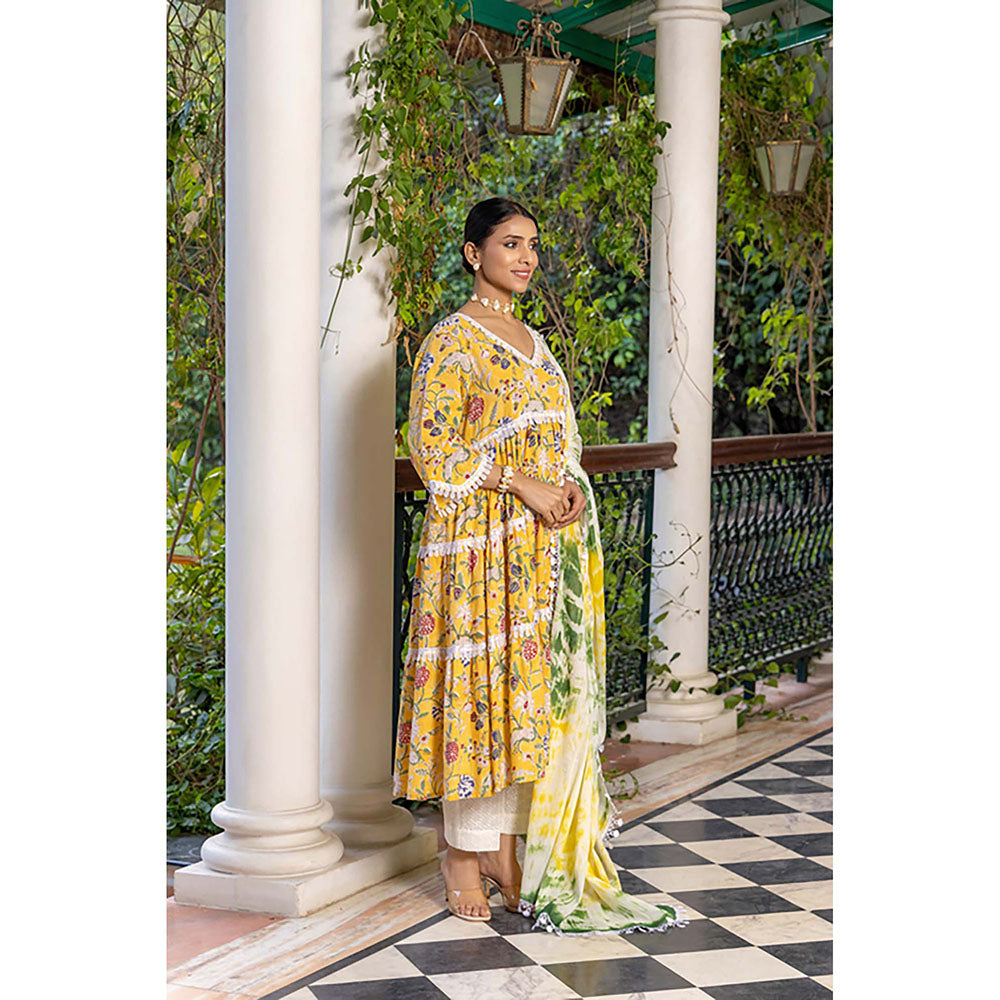 Naseebo Yellow Orchid Kurta With Pant And Dupatta