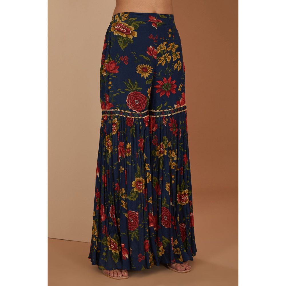 Neha Khullar Blue Anarkali Kurta With Gota Embroidery Sharara and Dupatta (Set of 3)