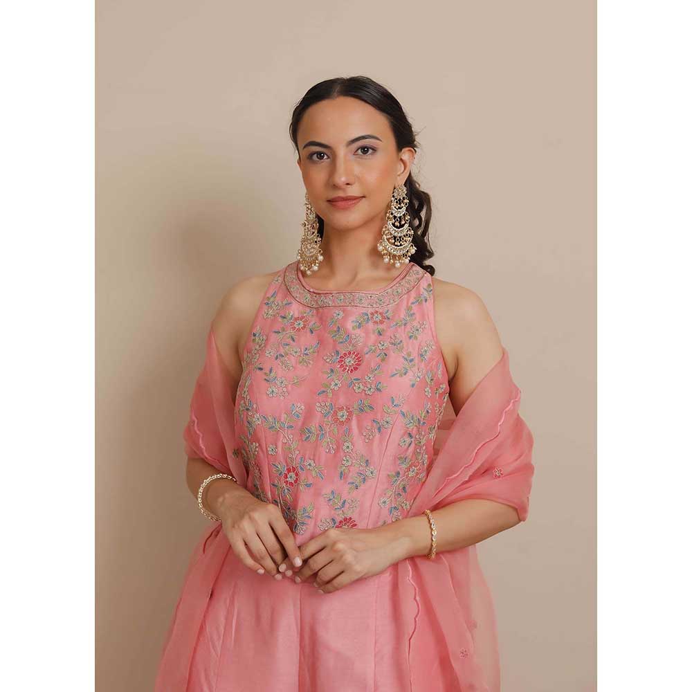Pink Corset Flared Top with Palazzo and Dupatta (Set of 3)