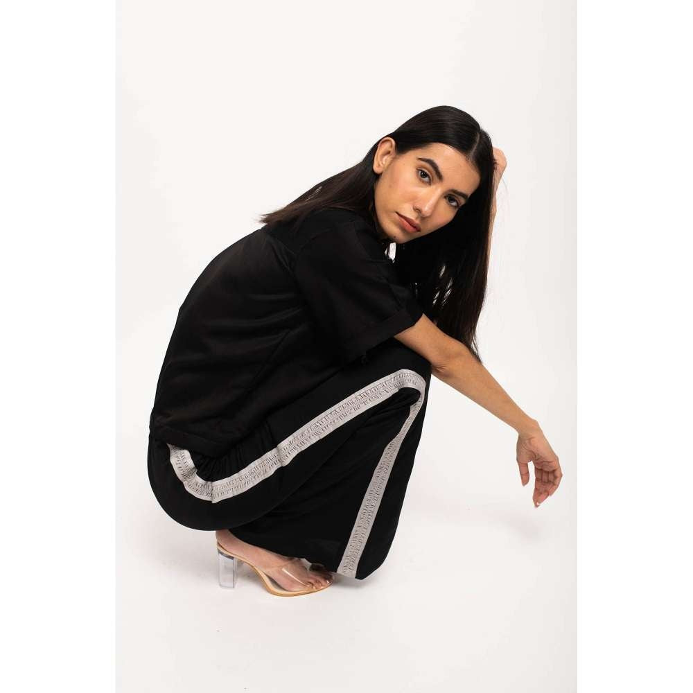 NEORA BY NEHAL CHOPRA Black & Grey Three Piece Rouching Co Ord (Set of 3)