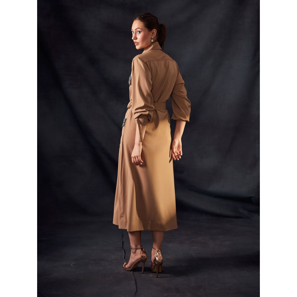 Description : Luxe Suiting Beige Dress with turkish beaded embroidery