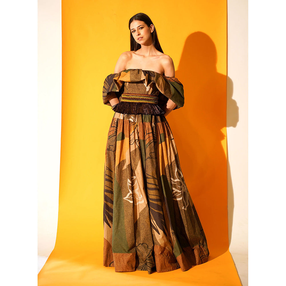 Nikita Mhaisalkar Tropical Print Off Shoulder Dress