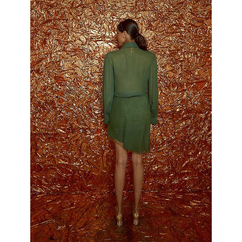 Green Georgette Shirt and Pleated Short Skirt (Set of 2)