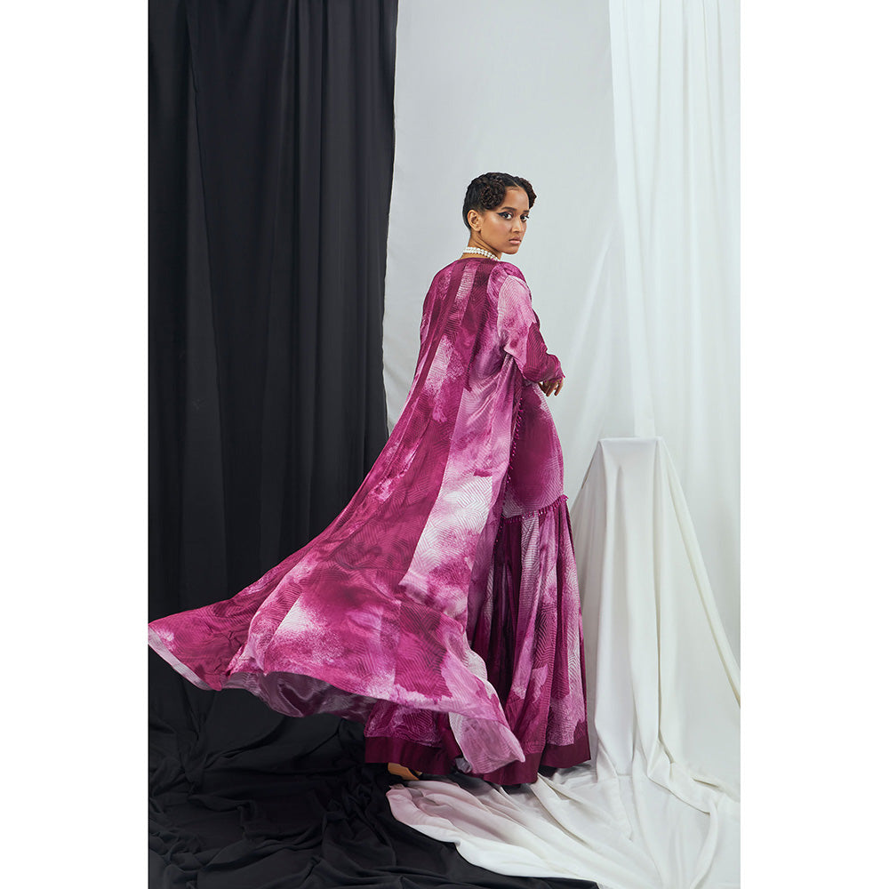 Description : Experience comfort in style with this wine sharara set from Nirmooha. Made from high-quality crepe, the bralette features full sleeves, a sweetheart neckline and a printed pattern. It is paired with a mid-waisted sharara and a chic cape. Style it with minimal jewellery and sandals to complete the ensemble.
