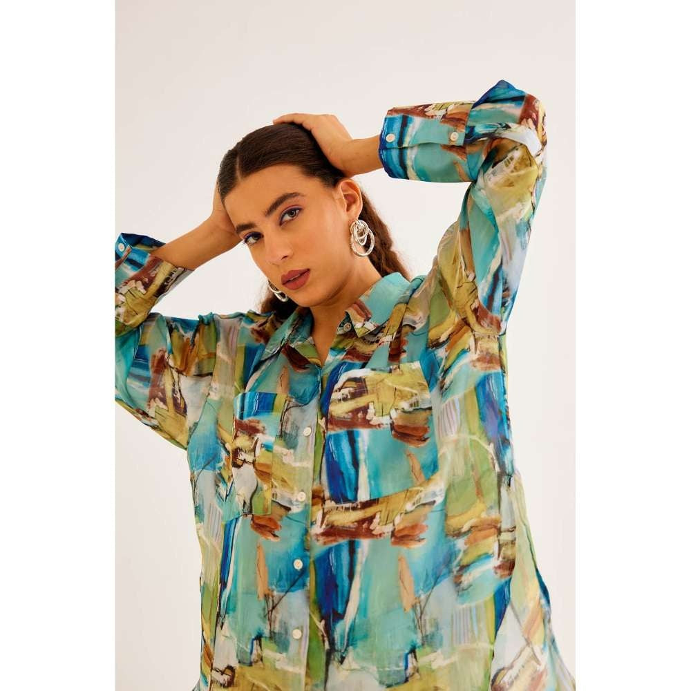 Description : Satin Georgette Blend BRUSHSTROKE Pocket Shirt. Tailored to sartorial perfection from premium quality fabric, it assures a soft and soothing touch against the skin. The exquisite silhouette adds to its appeal.