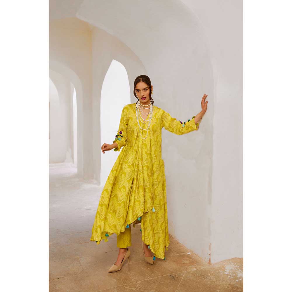 PALLAVI JAIPUR Gulbahar Lemon Green Tassel Kurta With Pant (Set of 2)