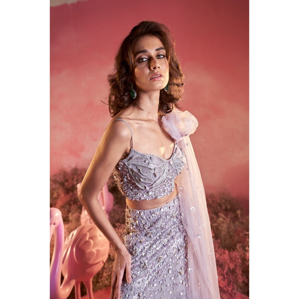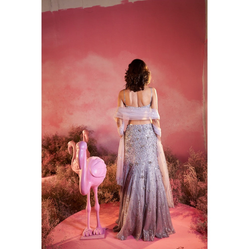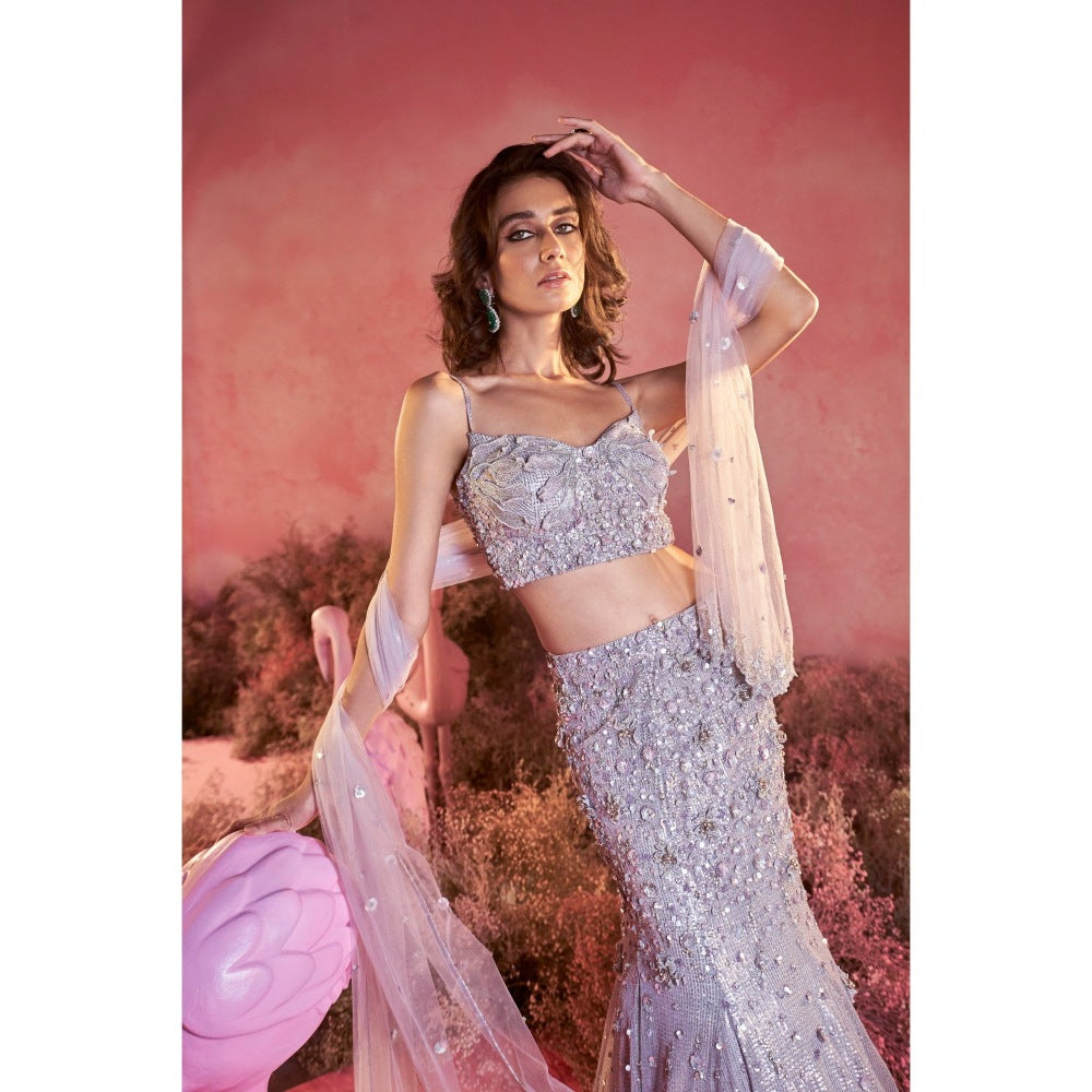 PARUL GANDHI Myra Purple Blouse with Lehenga & Dupatta (Set of 3)